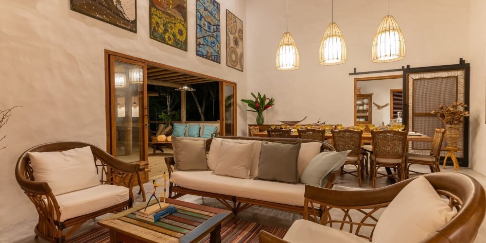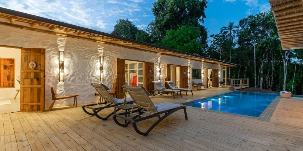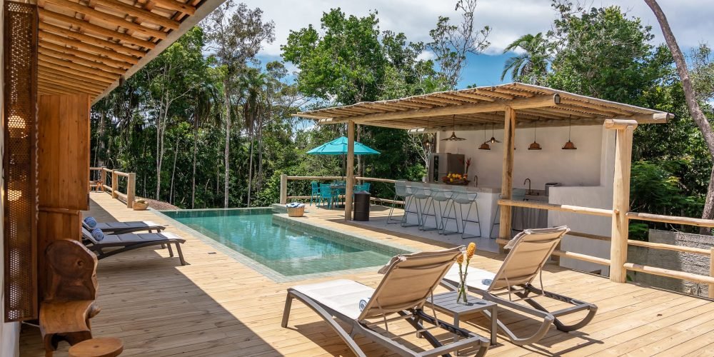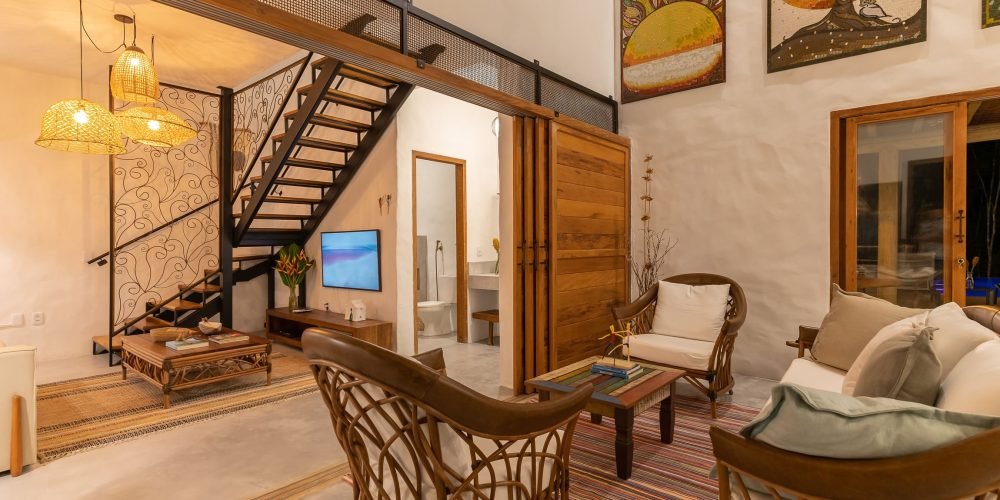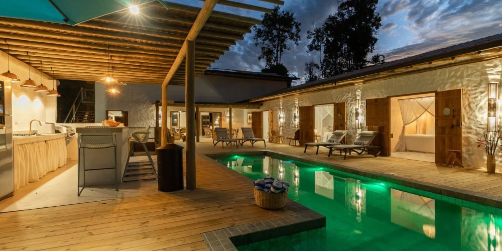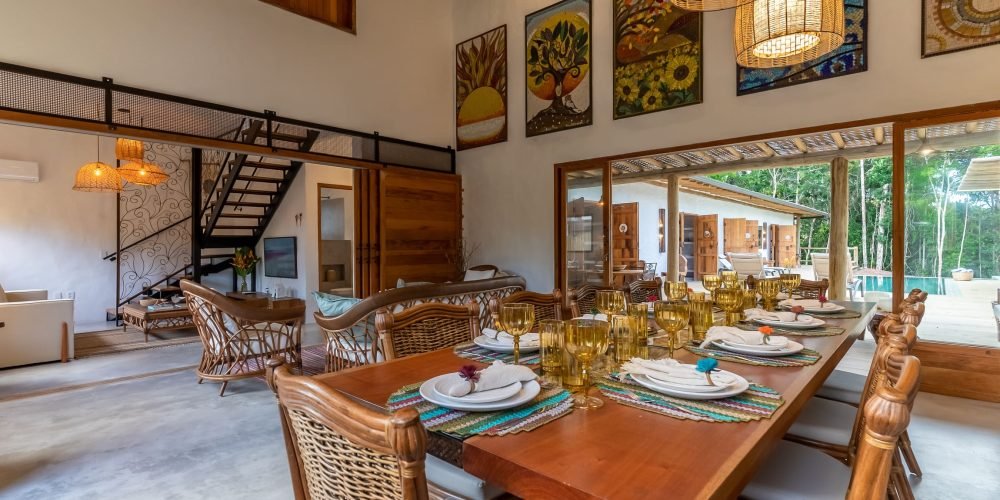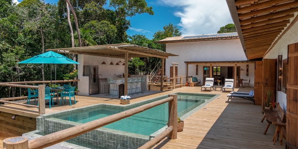 A Ayty 005 é inspirada nos elementos da natureza e cada um dos 5 quartos é representado por um elemento, sendo eles Fogo, Madeira, Terra, Água e Metal. Também é harmonizada e decorada com os princípios do Feng Shui para que sua estadia tenha as melhores vibrações. Estilo rústico, porém, sofisticado, ganha destaque com o reboco Santa Fé e com a decoração valorizando o artesanato brasileiro, com peças de artesãos de vários Estados do Brasil. A casa possui 5 quartos sendo 4 suítes e mais 1 banheiro que atende o quarto do mezanino (todos com ar-condicionado), sala de TV, sala de estar e jantar, um redário aconchegante num amplo jardim, área gourmet com churrasqueira e mesa para refeições ao ar livre, piscina com borda infinita e uma vista deslumbrante para a mata nativa e uma ducha externa. Staff: Camareira, cozinheira, jardineiro e piscineiro Acomoda confortavelmente 10 pessoas, podendo acrescentar até 4 camas auxiliares totalizando 14 pessoas. •Composição das camas em cada suíte (4 suítes) o2 camas de solteiro que podem formar 1 cama king + 1 cama auxiliar • Composição da cama do quarto andar superior: (1 quarto) o1 cama de casal King.