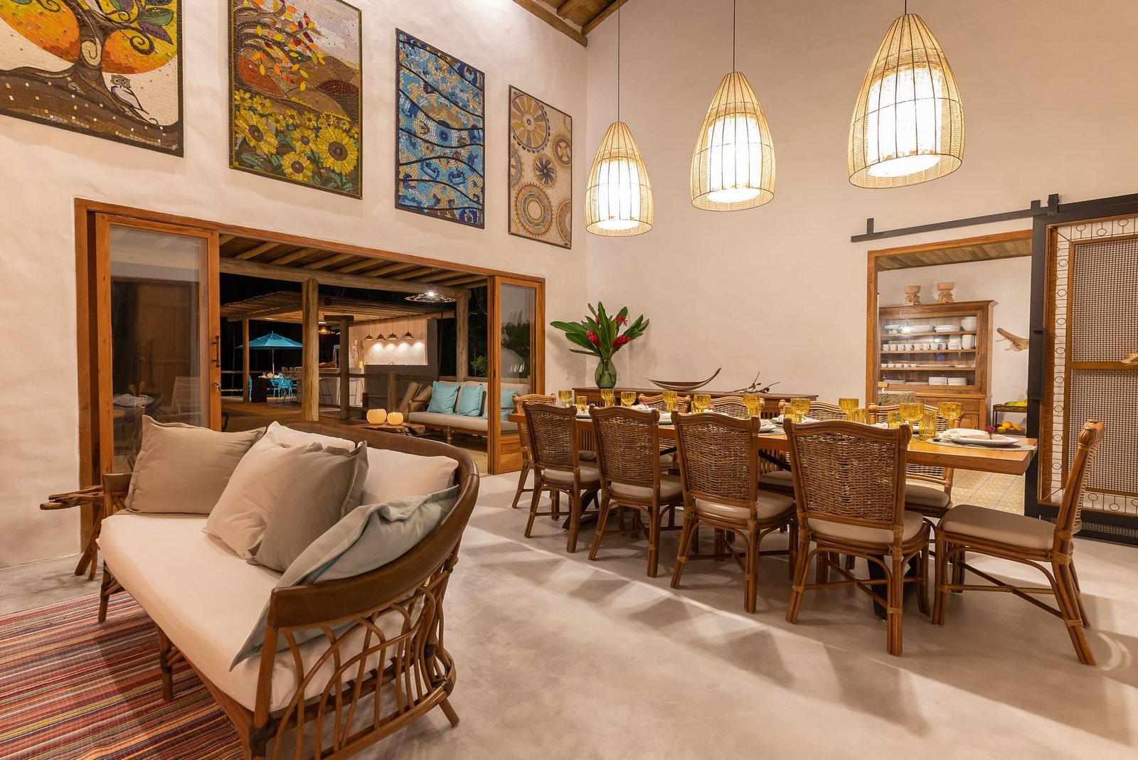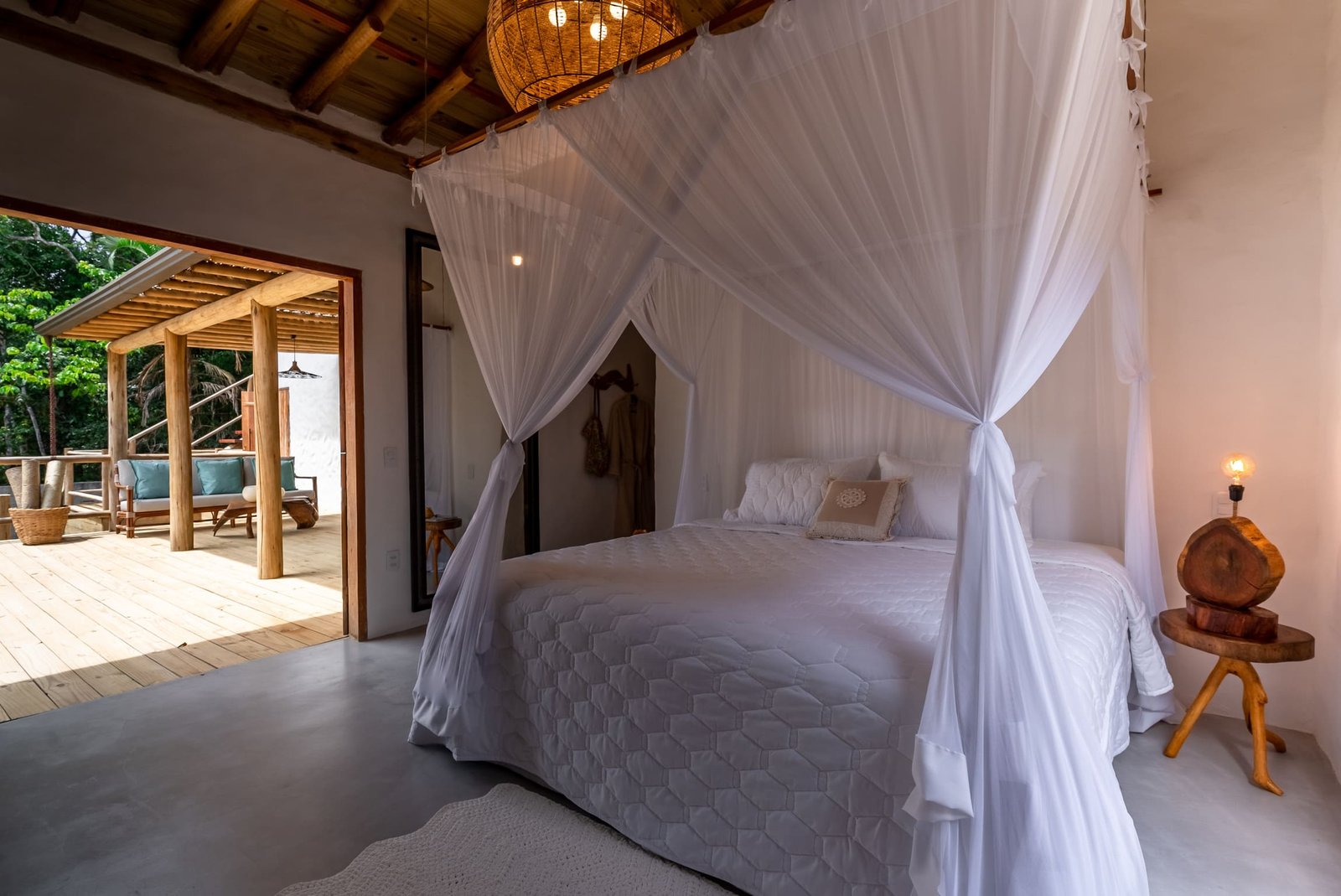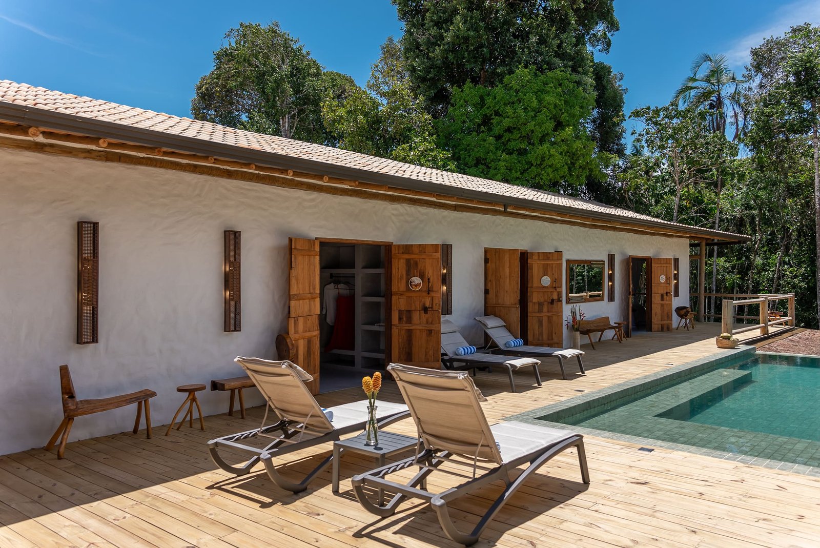 A Ayty 005 é inspirada nos elementos da natureza e cada um dos 5 quartos é representado por um elemento, sendo eles Fogo, Madeira, Terra, Água e Metal. Também é harmonizada e decorada com os princípios do Feng Shui para que sua estadia tenha as melhores vibrações. Estilo rústico, porém, sofisticado, ganha destaque com o reboco Santa Fé e com a decoração valorizando o artesanato brasileiro, com peças de artesãos de vários Estados do Brasil. A casa possui 5 quartos sendo 4 suítes e mais 1 banheiro que atende o quarto do mezanino (todos com ar-condicionado), sala de TV, sala de estar e jantar, um redário aconchegante num amplo jardim, área gourmet com churrasqueira e mesa para refeições ao ar livre, piscina com borda infinita e uma vista deslumbrante para a mata nativa e uma ducha externa. Staff: Camareira, cozinheira, jardineiro e piscineiro Acomoda confortavelmente 10 pessoas, podendo acrescentar até 4 camas auxiliares totalizando 14 pessoas. •Composição das camas em cada suíte (4 suítes) o2 camas de solteiro que podem formar 1 cama king + 1 cama auxiliar • Composição da cama do quarto andar superior: (1 quarto) o1 cama de casal King.