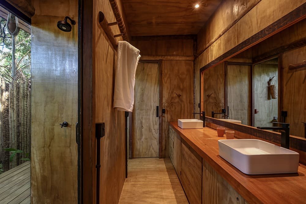 localizado no condomínio Altos de Trancoso, a 8 minutos andando pro quadrado e praia descrição Loft: cozinha/sala de estar com TV giratória, lavabo, lavanderia funcional. descrição casa madeira(68m2): copa compacta funcional, 2 quartos iguais com cama, televisão, ar condicionado e closet, ao fundo dividindo os quartos, amplo banheiro integrado, quarto perfeito para família com 2 filhos ou grupo de amigos adicionais inclusos: arrumadeira, café da manhã, serviço de concierge, experiência ofurô fitoterápico
